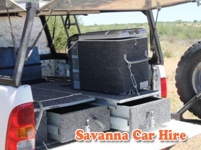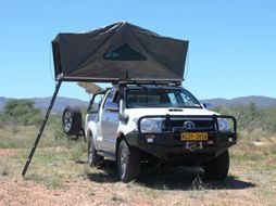 - 1x Roof tent (1.3m x 2.4m) with mattress - 1x 40l Engel Fridge with own Battery - 1x Table & 2 x Chairs - 2x Gas cylinder - 2x Single Cooker plate - 1x Barbeque grid - 1x 12v Lamp - 1x 45l build in Water Tank - 1x Bed sheet for the mattress (Sleeping bag with Pillow at N$ 30/day – must be booked) - 1x Shovel, 1x Kitchen box*KITCHEN BOX