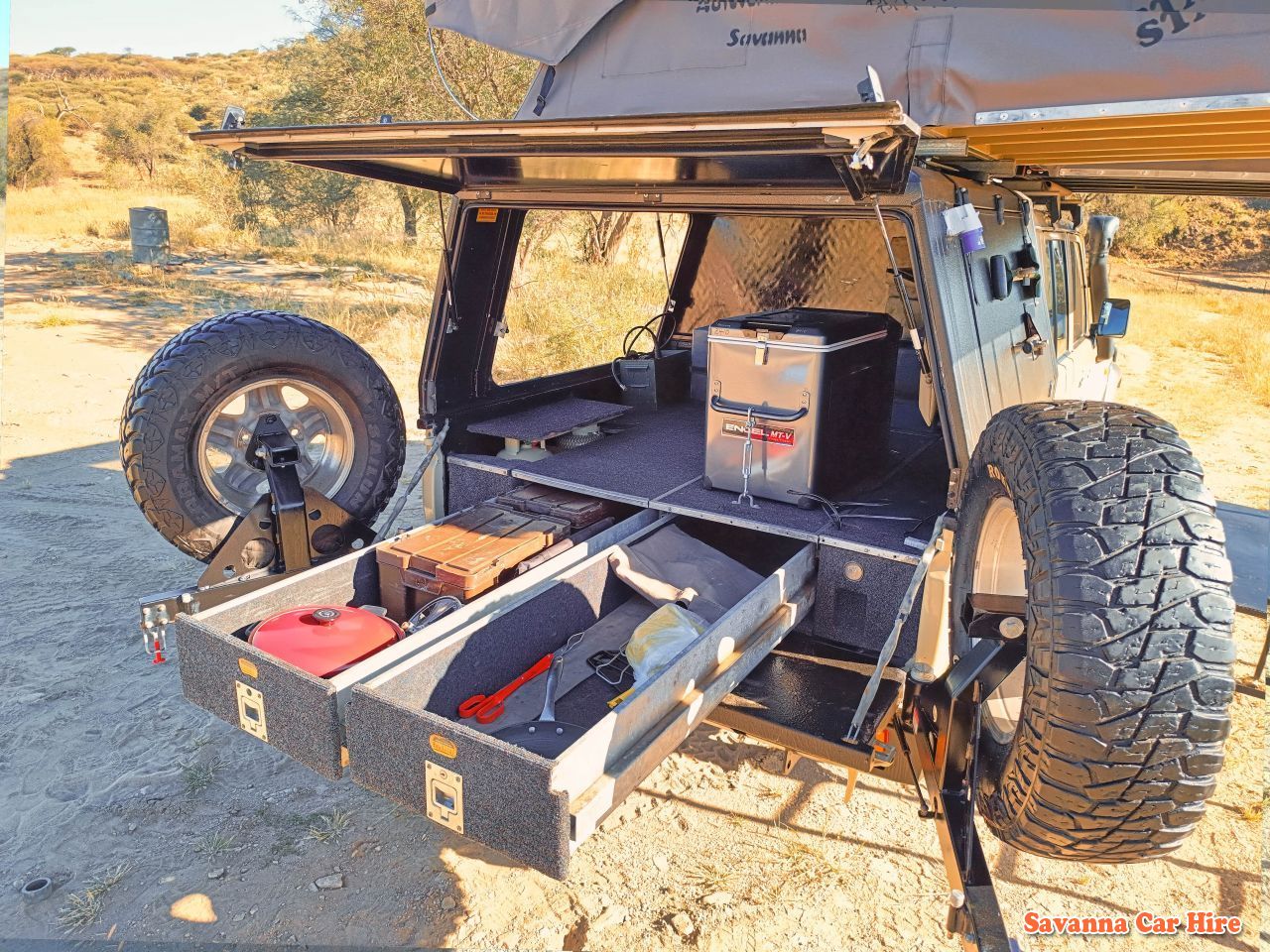 To enhance your self-driving safaris, our 4x4 rentals come with special drawer systems and numerous extras, providing you with the ultimate comfort and convenience on your journey. With our comprehensive camping equipment, you’ll feel right at home under the Namibian sky.