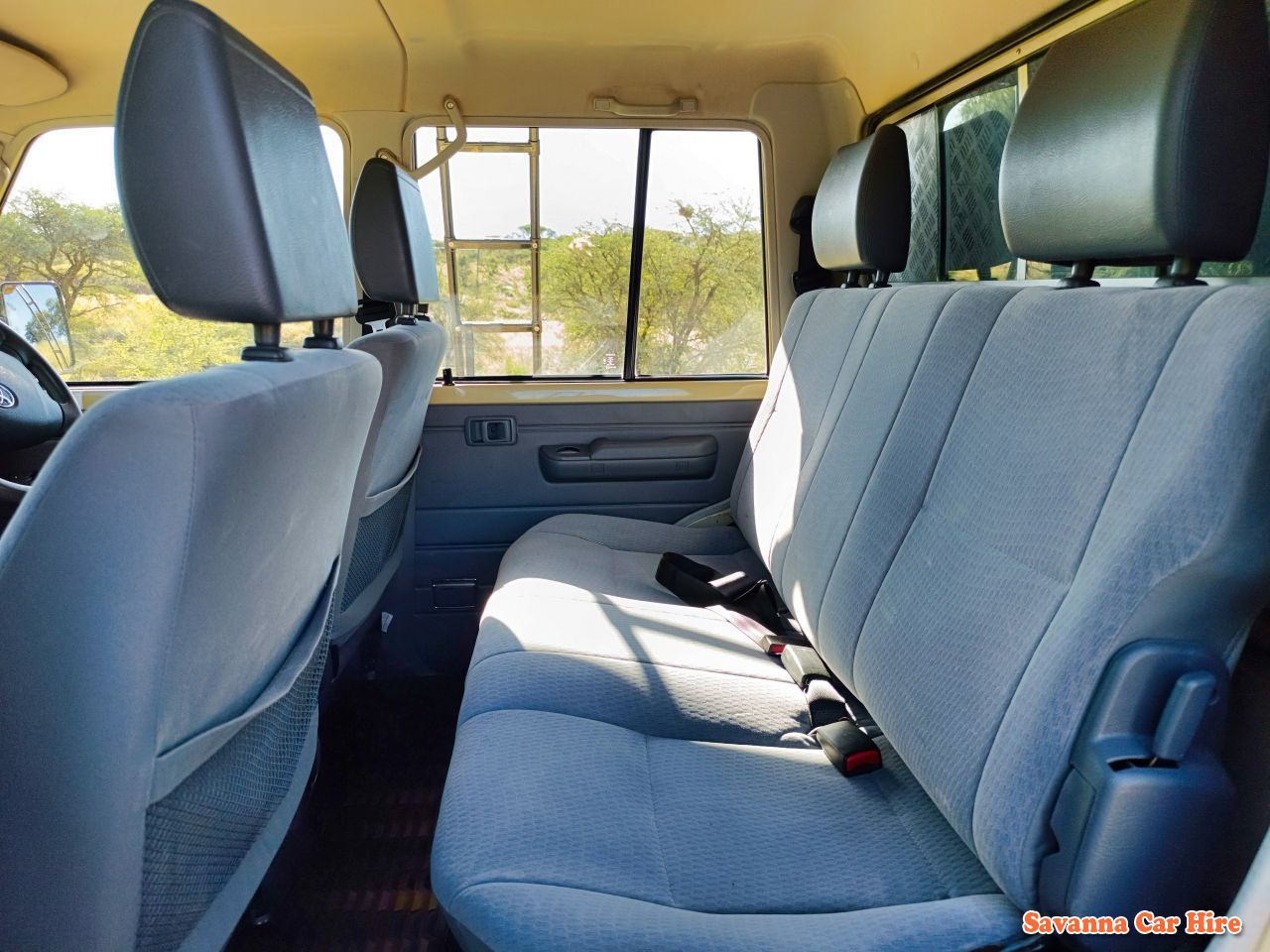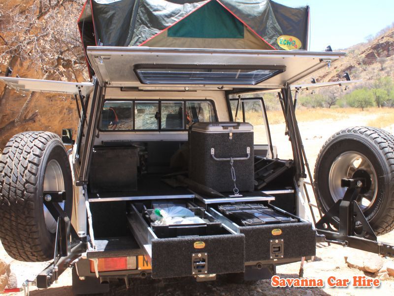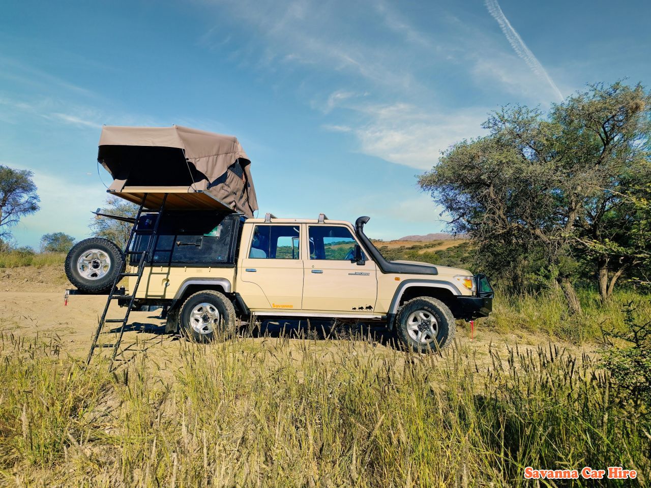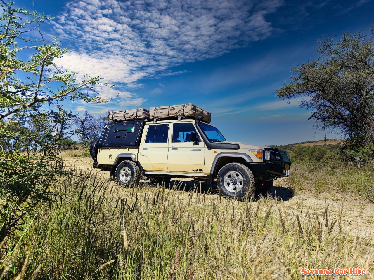 | Passenger seats: 4 adults + 1 child (but camping only for 2 pax) | Other vehicle details: This vehicle Group can be either Toyota Landcruiser 4.5 V8 or a Toyota Landcruiser Straight six 4.2 (A certain vehicle make cant be requested or guaranteed) All our vehicles are equipped with two spare wheels and compressor |